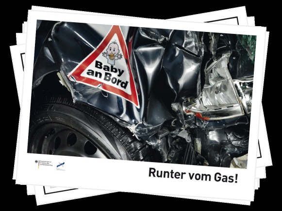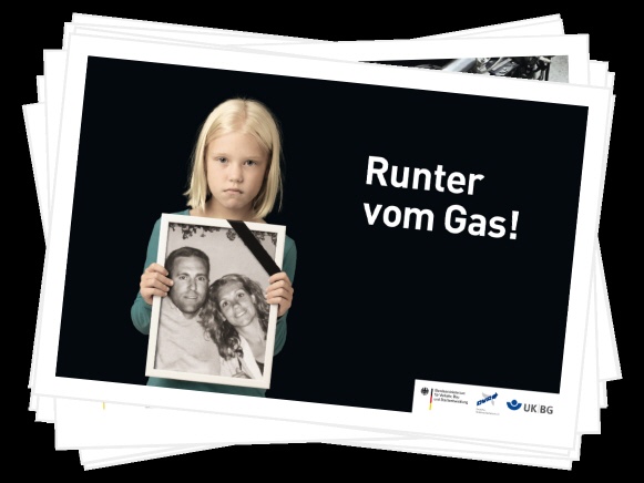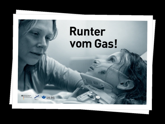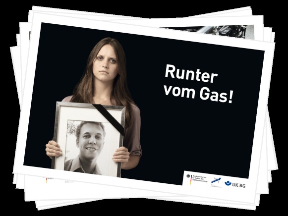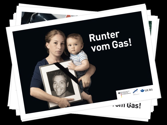 Die Zahl der Verkehrstoten ist in Deutschland im Vergleich zum Vorjahr 2010 um zwölf Prozent auf rund 3.700 gesunken. Doch überhöhte Geschwindigkeit ist noch immer eine der Hauptursachen für Verkehrsunfälle mit Todesfolge. Im ersten Halbjahr 2010 waren zwei von fünf Todesopfern im Straßenverkehr auf nicht angepasste Geschwindigkeit zurückzuführen. 2007 verunglückten jährlich noch 5.000 Menschen tödlich und „unangepasste Geschwindigkeit“ bildete bei weitem die häufigste Unfallursache (31 Prozent) für Verkehrsrunfälle mit Todesfolge. „Runter vom Gas!“ lautete deshalb die zentrale Aufforderung einer gemeinsamen Kampagne des Deutschen Verkehrssicherheitsrates (DVR) und des Bundesverkehrsministeriums (BMVBS). Die Kampagne machte in den Jahren 2008 bis 2010 auf die dramatischen Folgen zu schnellen Fahrens aufmerksam und zielte besonders auf junge Fahrer zwischen 18 und 24 Jahren und Motorradfahrer ab.