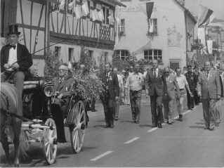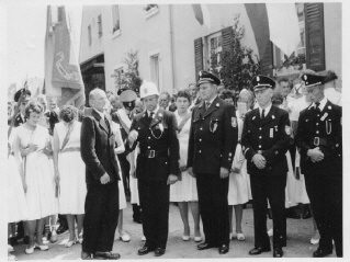 Das 100-jährige Gründungsfest vom 10. Bis 13. Juni 1977, war ein großartiges Fest, das Schönau aus seinem gewohnten Lebensrhytmus heraus riss. Viele Helfer haben dazu beigetragen, damit das fest zur Manifestation der Feuerwehr geworden ist. Der offizielle teil, unter Beteiligung zahlreicher Prominenz aus Politik und Wirtschaft, begann schon am Feitag mit der Totenehrung. Beim Kommersabend im Festzelt am DJK Sportgelände, wurden zahlreiche Feuerwehrjubiiare geehrt. Am Samstagnachmittag fand eine große Einsatzübung, an der die Nachbarwehren teilgenommen hatten, statt. Am Abend stieg ein unvergeßlicher Heimatabend mit einem buntem Programm, unter der Leitung von Werner Kiesel. Kirchenparade und Festgottesdienst, den Kuratus P. Schmidt im Zelt zelebrierte, leiteten die Festlichkeiten am Sonntag ein. Am Nachmittag folgte ein farbenfroher, großer Festzug, wohl der bisher größte in seiner Art in Schönau. An diesem nahmen 57 Wehren und Vereine, samt 5 Blaskapellen, teil. Auch die alte Saugdruckspritze von anno dazumal, aus dem “Feuerwehrmuseum“ von Schönau, wurde mitgezogen. Die 80-jährigen Feuerwehrveteranen fuhren dabei stolz in einer Kalesche. Das Dorf war prächtig geschmückt und das Wetter zeigte sich von deiner besten Seite. Voll war das Zelt an diesem Nachmittag, als Bürgermeister Elmar Griebel die vielen Wehren, Ehrengäste und Besucher gegrüßte. In der 1978 vorgezogenen Jahreshauptversammlung erklärten die beiden Kommandanten ihren Rücktritt.