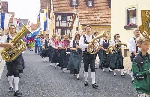 (zir) Ein beeindruckender Festzug mit Feuerwehren aus dem gesamten Landkreis bewegte sich am frühen Samstagabend durch die fahnengeschmückte Rhönstraße in Schönau. Der Zug war der Auftakt zu den Feierlichkeiten anlässlich der Indienststellung und Segnung des neuen Feuerwehrlöschfahrzeuges STLF 10/6 für die Schönauer Feuerwehr. Ein richtiger Hingucker im Rahmen des Zuges waren die Musikantinnen und Musikanten der Weisbacher Trachtenkapelle (Bild) bei ihrem Auftritt im Festzug des Schönauer Feuerwehrfestes am Samstagabend. In prächtiger bunter Rhöner Tracht erhielten sie natürlich sehr viel Beifall von den Zuschauern an der Zugstrecke. Ein ausführlicher Bericht über das Fest folgt in unserer morgigen Ausgabe.